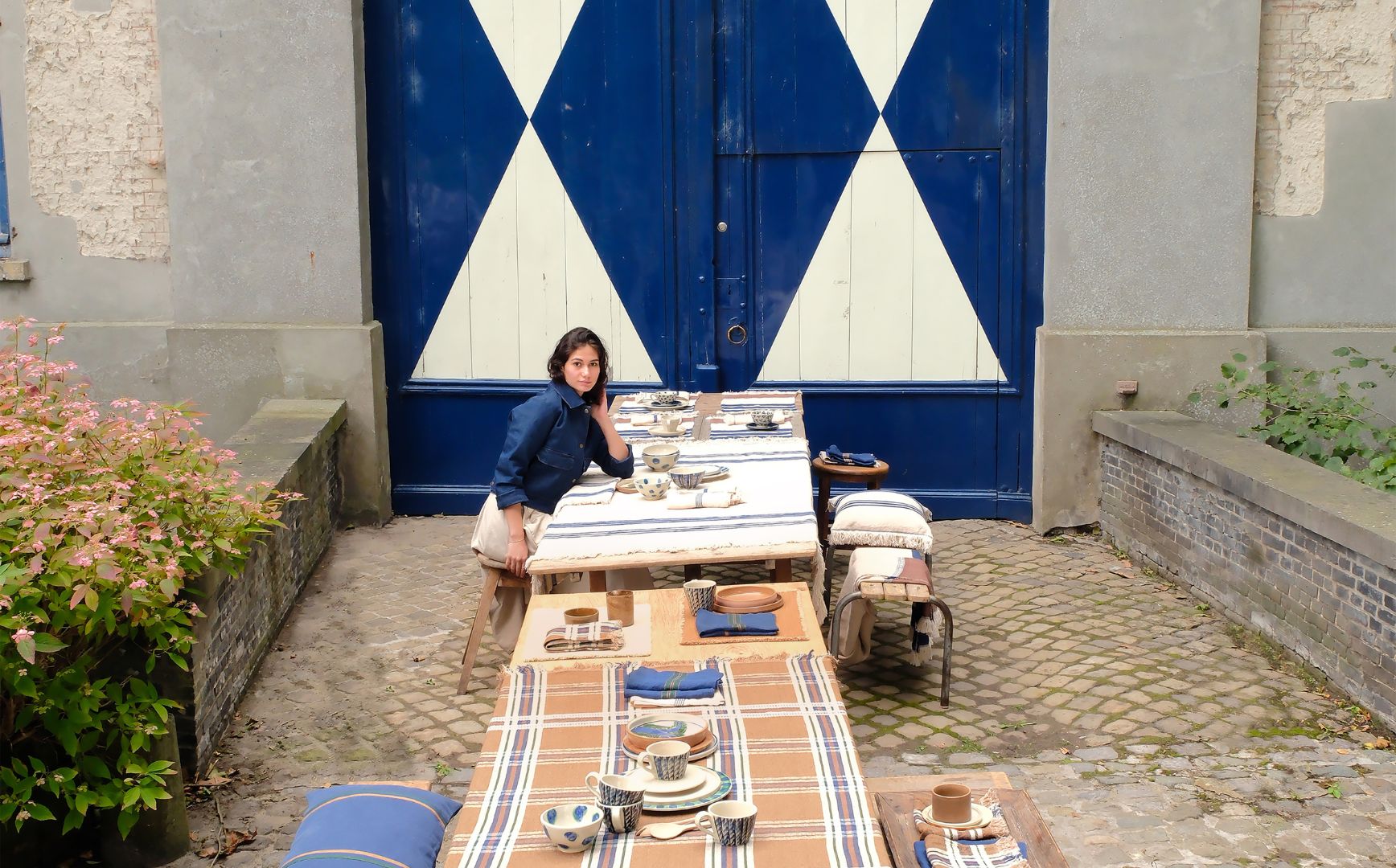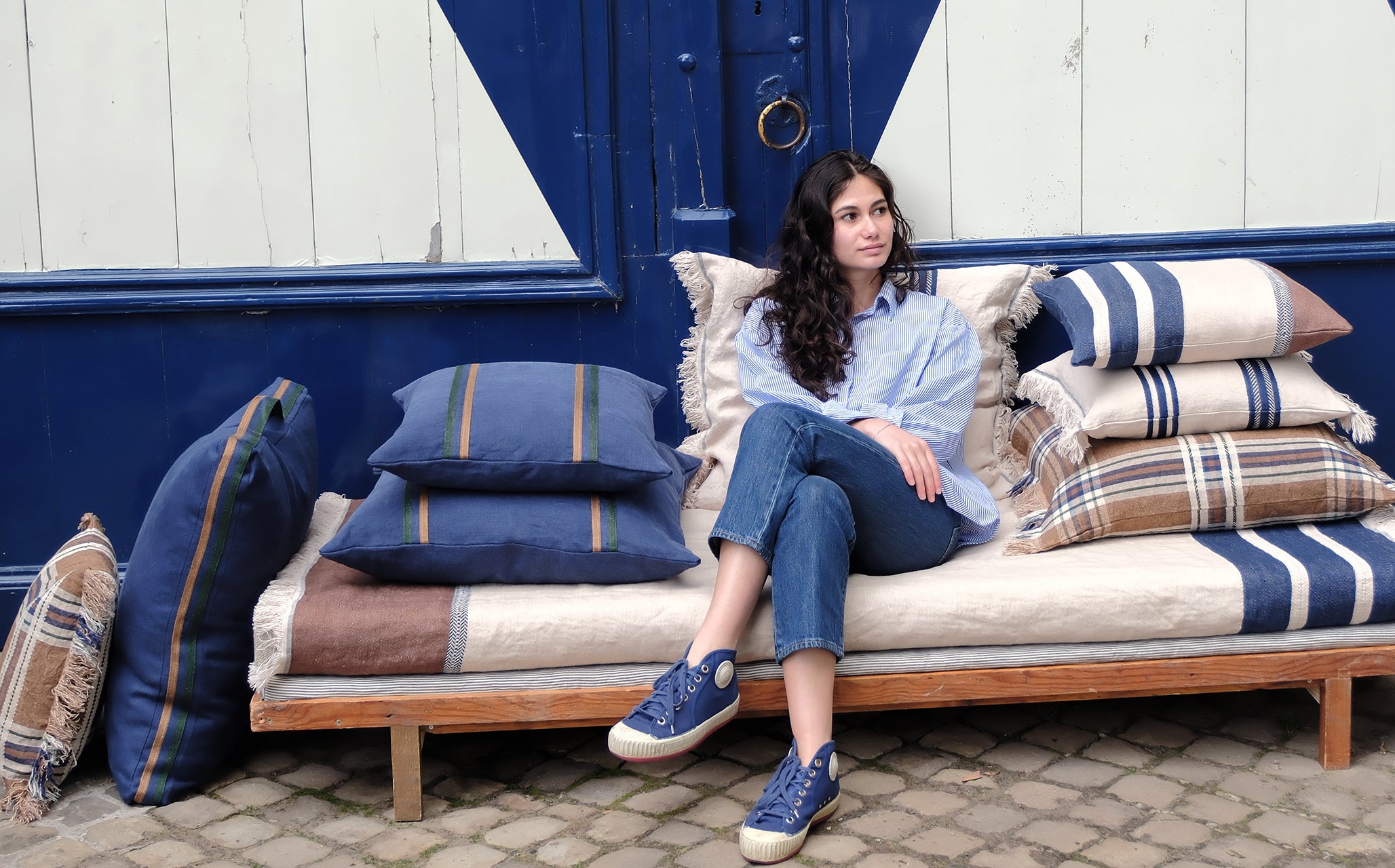 LIBECO クッションカバー インディゴ