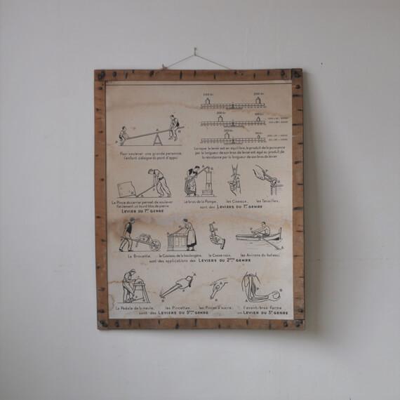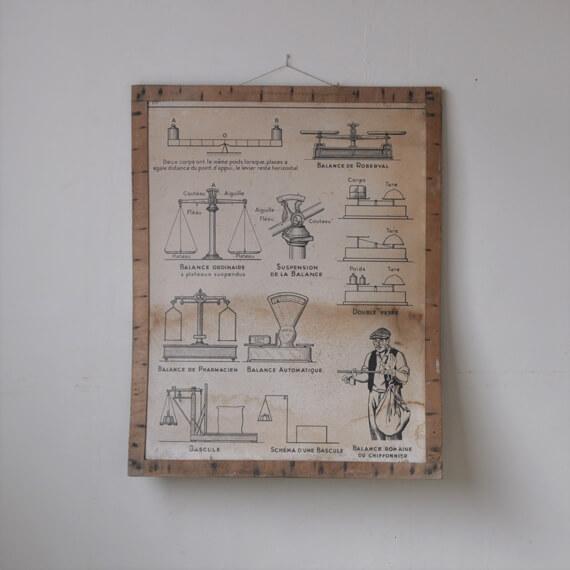表裏の両面にプリントされたフランスのヴィンテージポスター。学校の教材として使われていたものです。インダストリアルな演出にいかがでしょう。