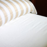 オーガニックリネン100%のヘリテージ・フィテッドシーツ。他のシリーズと比較して厚地でしっかりとした使い心地です。お洗濯を繰り返していくうち、柔らかな風合いに変化していきます。ベッドメイキングが楽ちんなゴム仕様のボックスシーツです。
