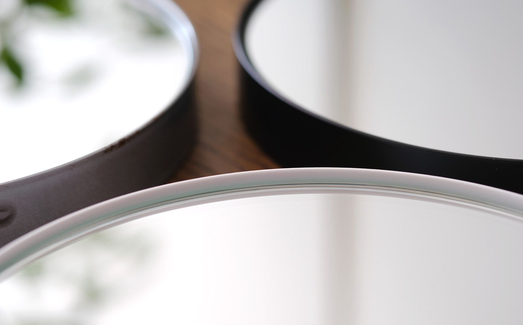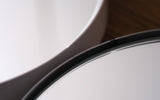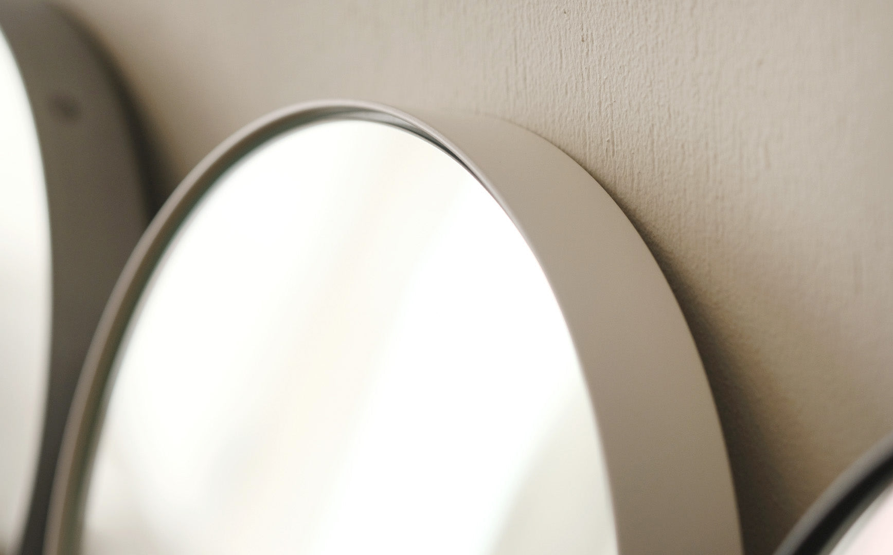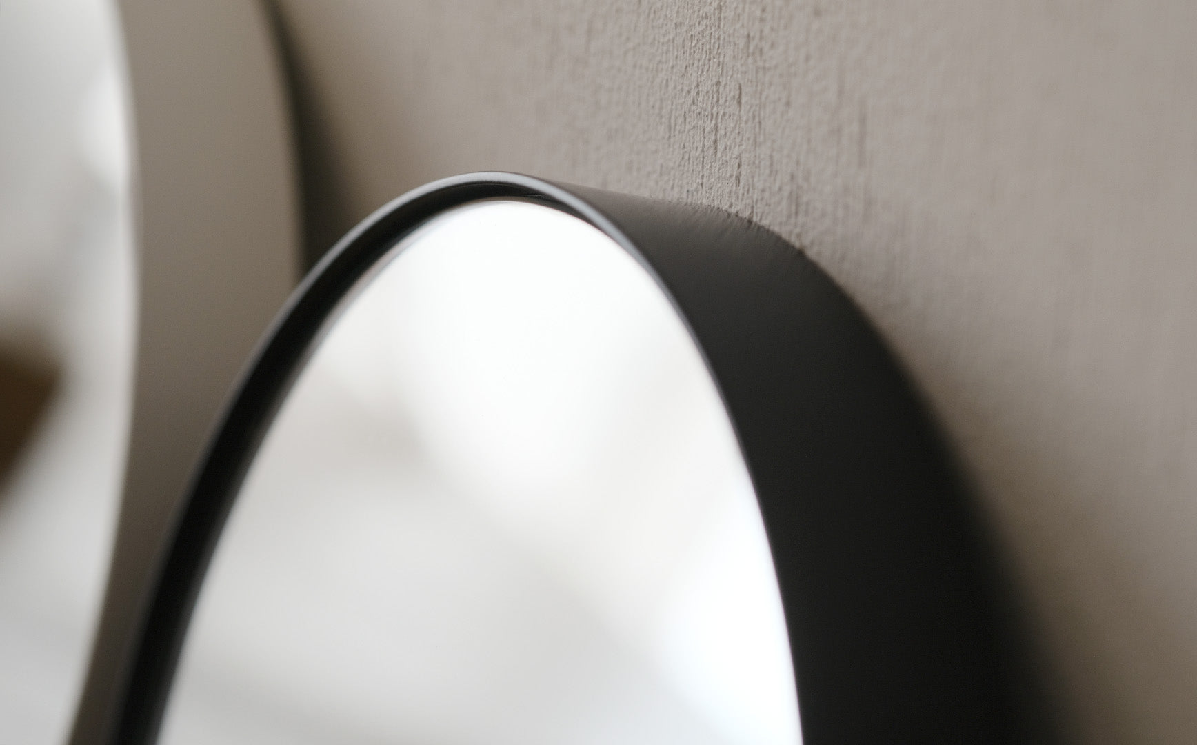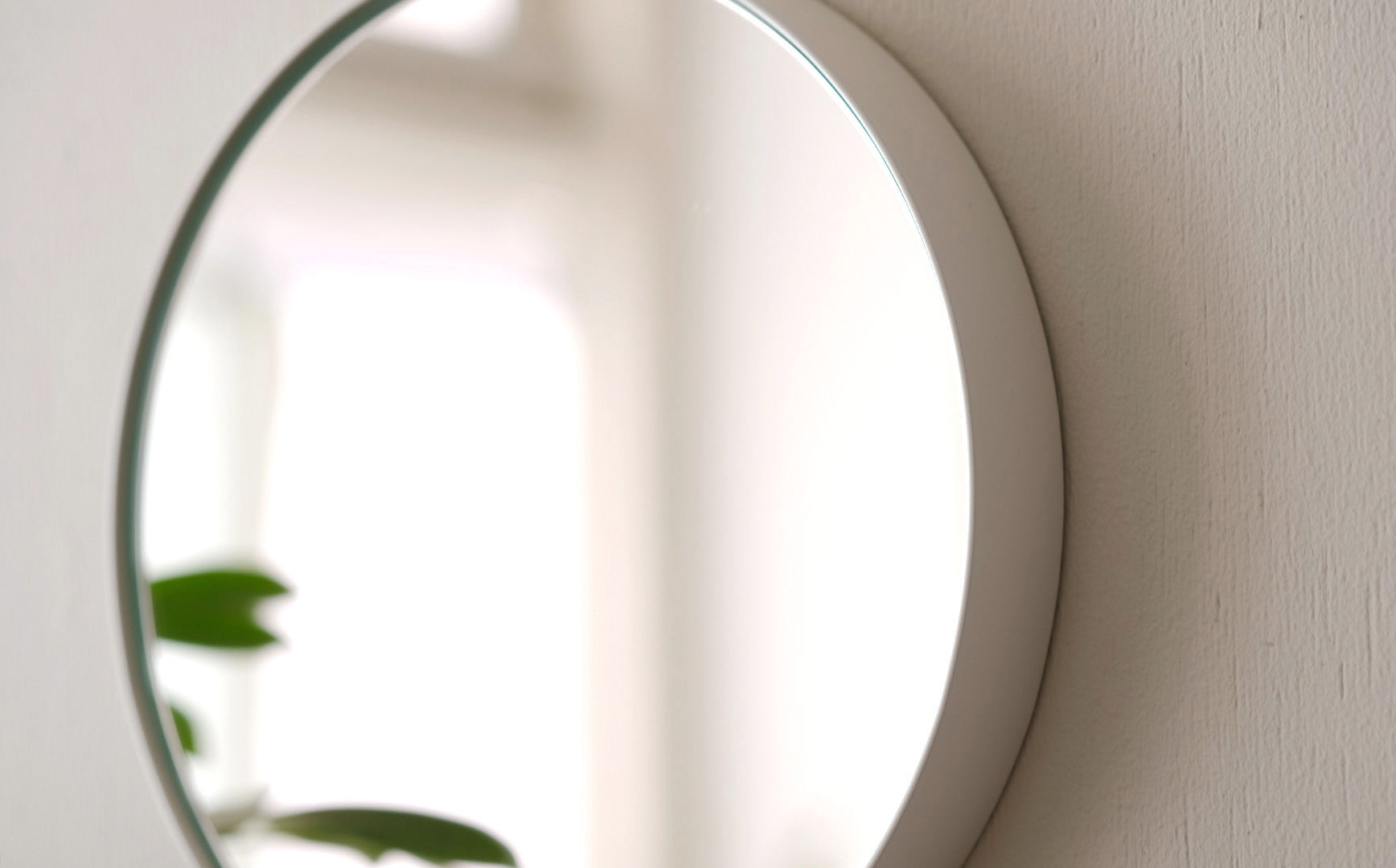 よくみると鏡面のアウトラインとフレームの間に空洞を持たせたデザイン。この微細な空きがあることによって、鏡面には浮いているかのような軽やかさが生まれています。うつくしい仕上がりについ見惚れてしまいます。