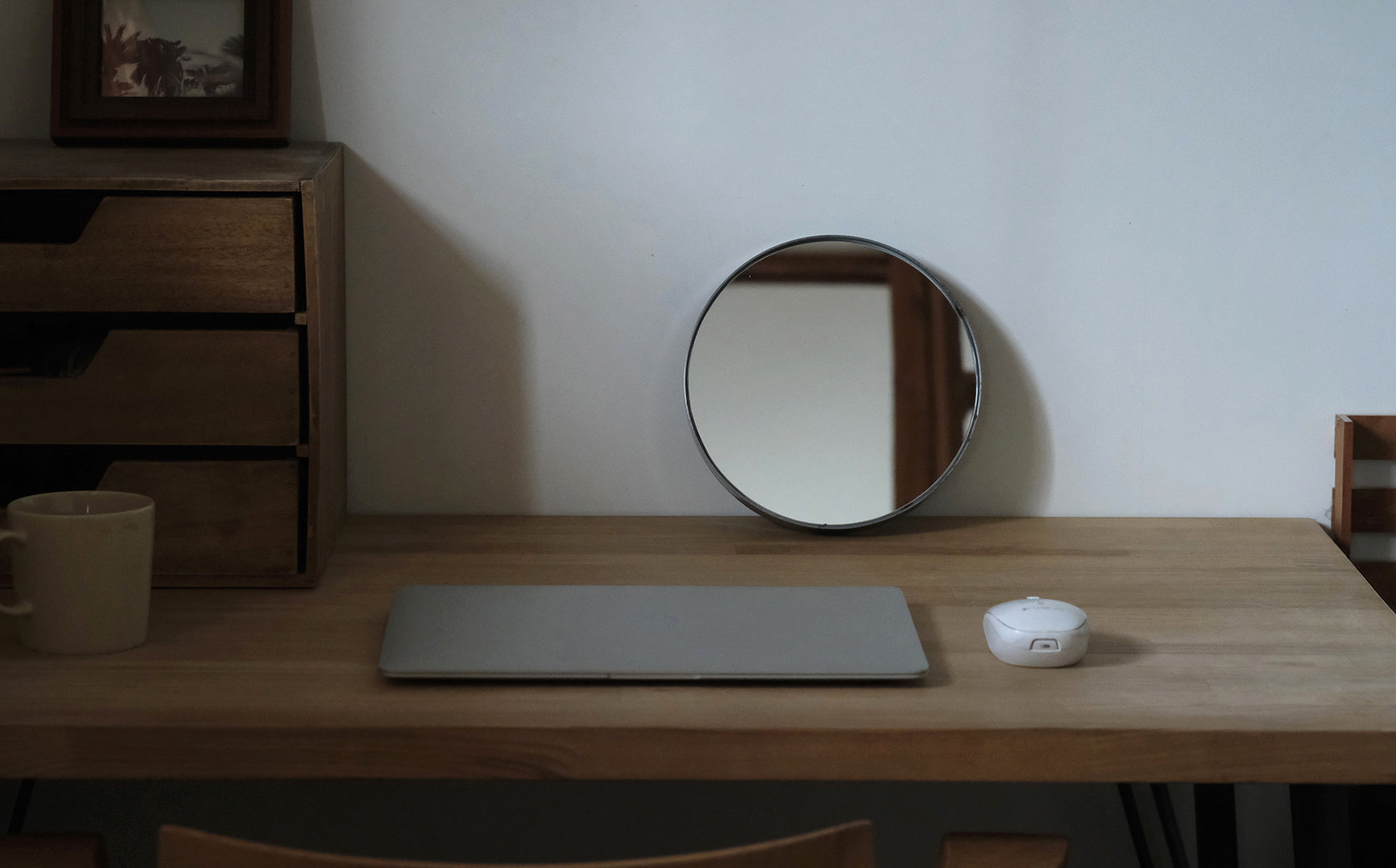 直径20cmというちょうどよいサイズも影響しているのかもしれません。重硬質なのにその佇まいの中に穏やかさを感じられるミラーなんです。