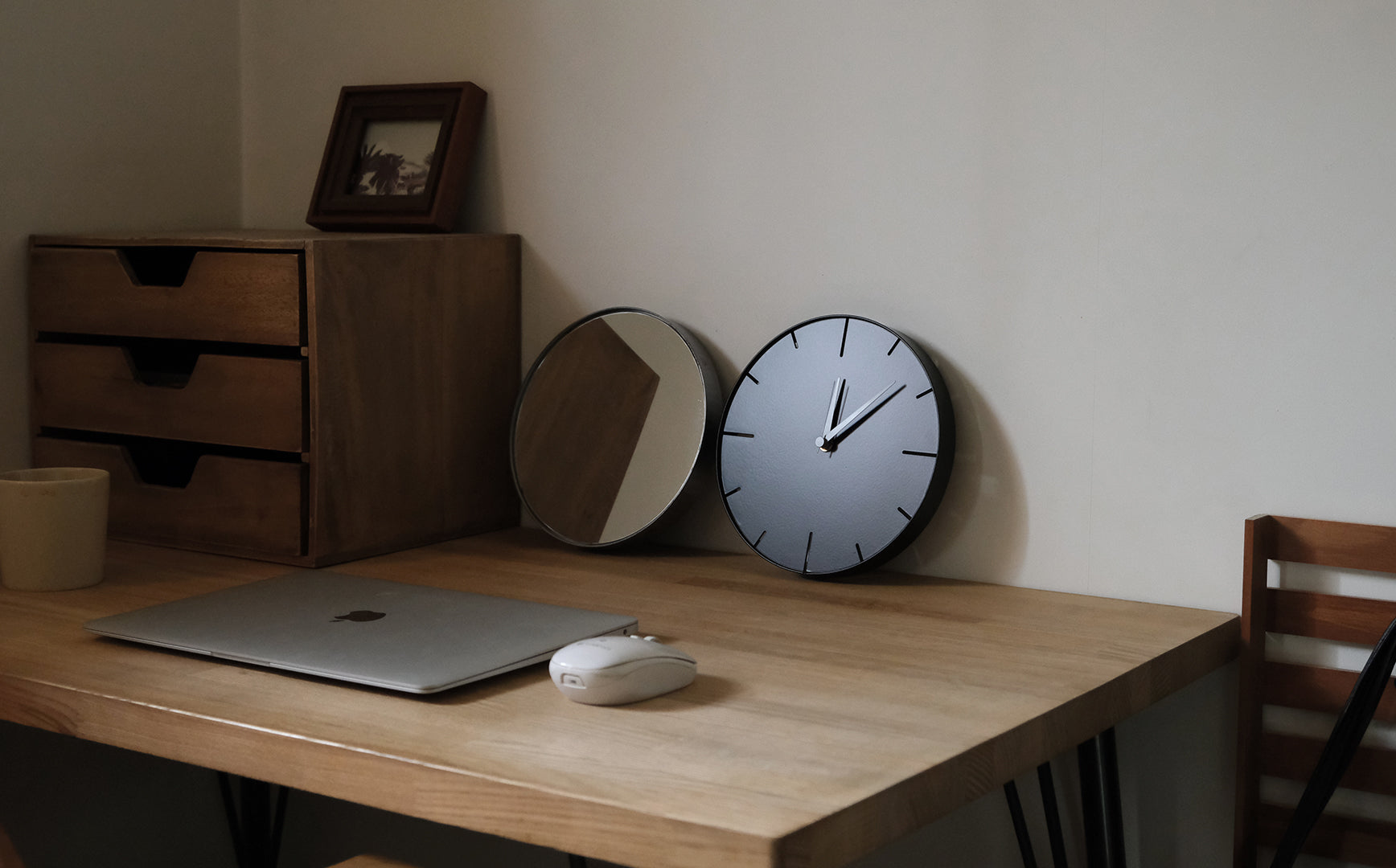 「ただの時計」から派生してつくられたシンプルなデザインのサークルミラー