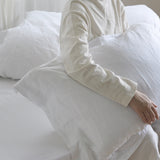 LIBECOの定番クラシックスシリーズのピローケース。細い糸で織られた生地はさらりとした肌触りです。シンプルで合わせやすく、真っ白な清潔感が魅力。約7cmのふちが付いた上品なデザインです。合わせタイプの入れ口は着脱も簡単。