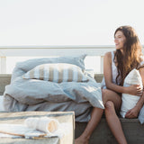 爽やかでノスタルジックなLIBECOのピローケース「マオラ」。ライトブラウンにグレーのピンストライプが淡く溶けみ、マニッシュな雰囲気を演出します。洗い加工された生地は、柔らかで気持ちのよい肌触りです。