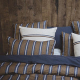 海辺のコテージ、インテリアを思わせるようなカラーリングのLIBECOのピローケース「セーラム」。シックなブラウンに、ネイビーストライプの組み合わせが新鮮です。ほどよい厚さの綾織生地に洗い加工をかけた柔らかな風合いです。
