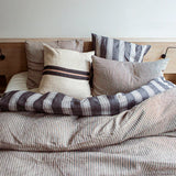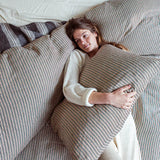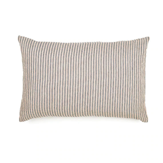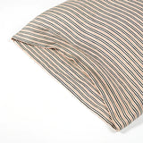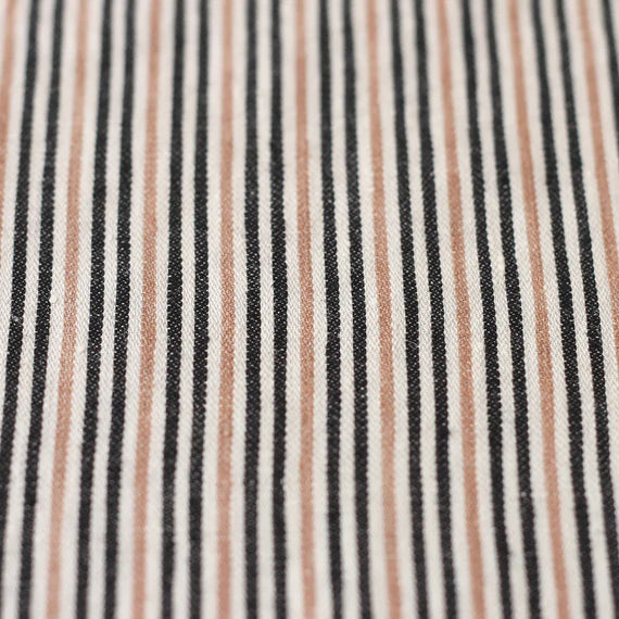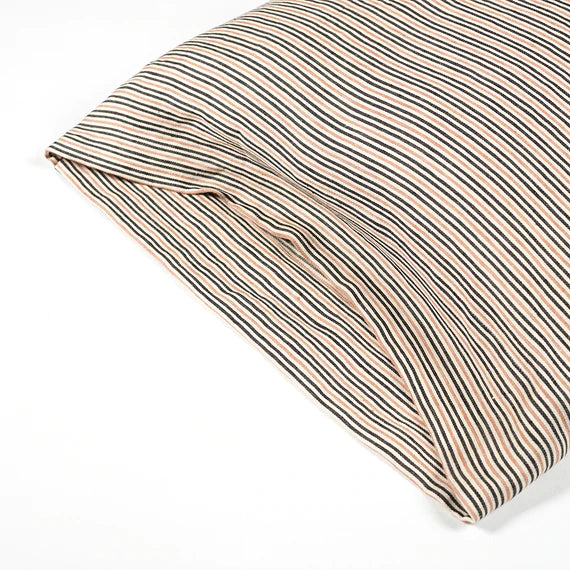 モダンなベッドルームを演出する、ピローケース・サン ガブリエル。ブラックにスモーキーなピンクが組み合わさることで、コントラストが控えめでナチュラルなピンストライプに仕上がっています。
