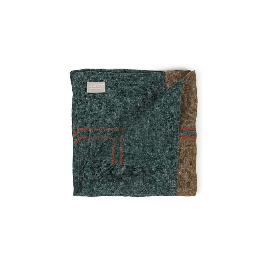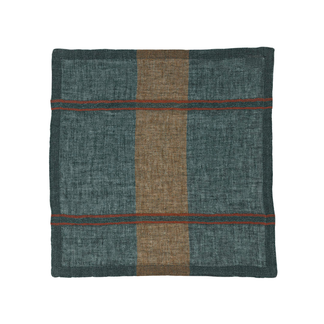 ダークなブルーグレーに、キャメルやバーガンディーのラインが効いたLIBECOのナプキン・ハムレットチェック。洗いのかかったガーゼ生地は、使いはじめからふんわり柔らかな風合いです。