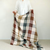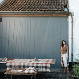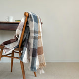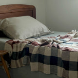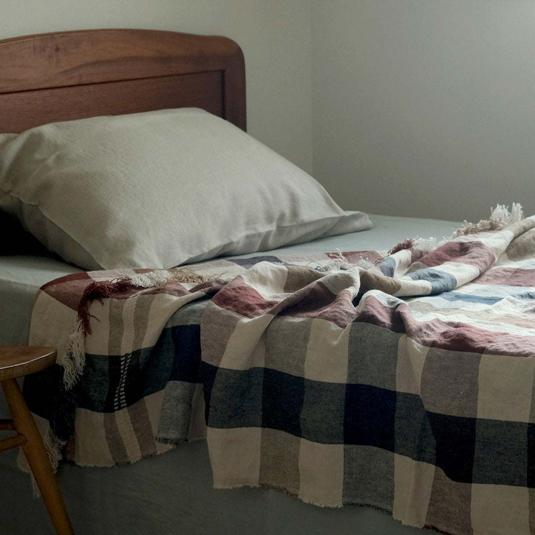 さらっとしたリネンの風合い豊かなLIBECOのスローベルジャン・マキシン。パッチワークするように、織とカラーでデザインされたチェック柄が魅力です。インテリアが新鮮に早変わりするシックかつ鮮やかな一枚です。