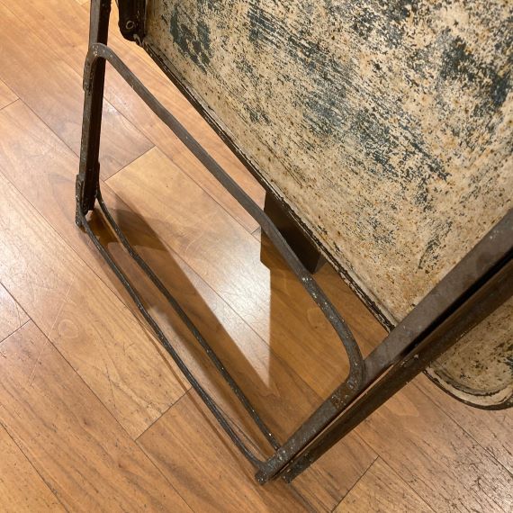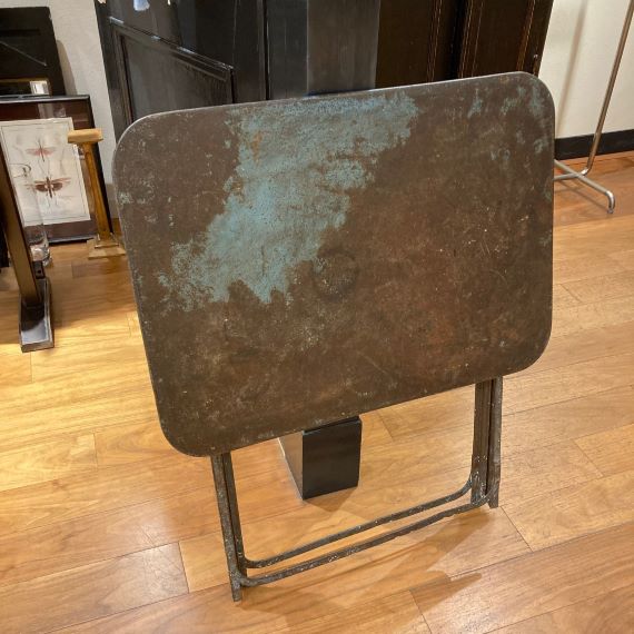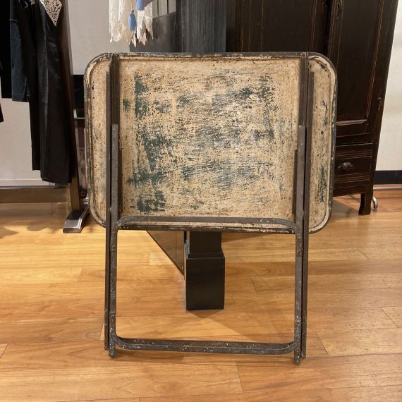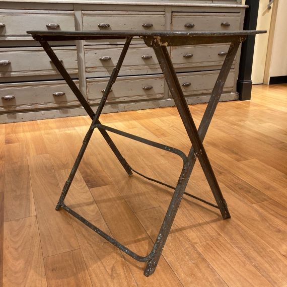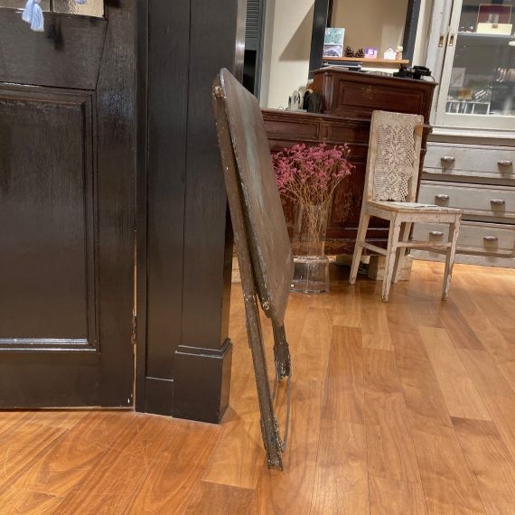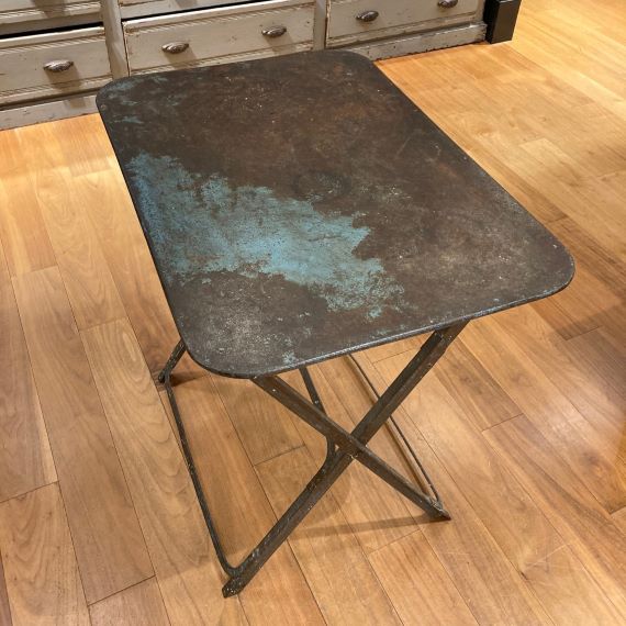 折り畳み式の小ぶりなガーデンテーブル。かすれたブルーペイントの表情豊かな天板が特徴。室内で使用しても絵になるテーブルです。折り畳めるのでオケージョナルテーブルとしても。