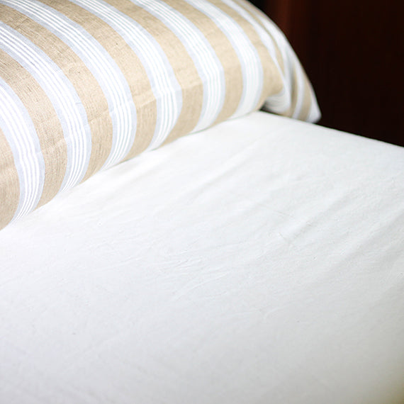 LIBECOの定番ベッドリネン、ヘリテージシリーズのフラットシーツ。オーガニックリネン100%の最高の品質と心地よさを併せ持つシリーズです。原料を育てる土壌つくりから収穫まで、定められたオーガニックの基準を満たしてつくられています。