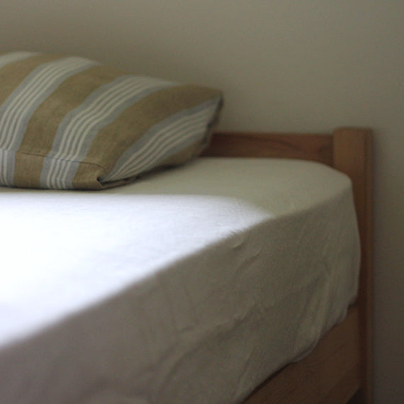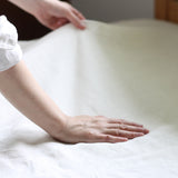 フラットシーツは贅沢に生地をたっぷり使った一枚仕立て。敷き布団や厚手のマットレスをお使いの方におすすめです。夏は肌掛けに、トップシーツのようなアレンジにも適しています。