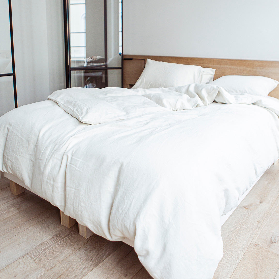フラットシーツは敷き布団だけではなく、ベッド・マットレス用としてもおすすめ。きめ細やなさらっとしたリネンの肌触りをどうぞお楽しみください。