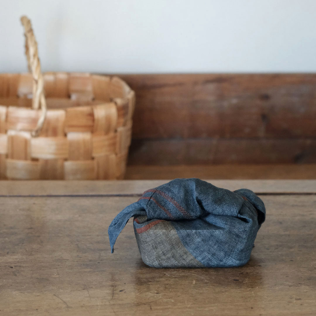 ダークなブルーグレーに、キャメルやバーガンディーのラインが効いたLIBECOのナプキン・ハムレットチェック。洗いのかかったガーゼ生地は、使いはじめからふんわり柔らかな風合いです。