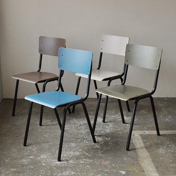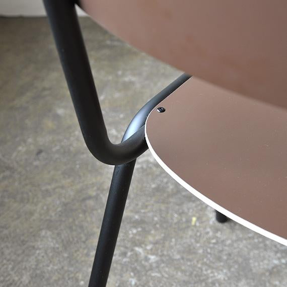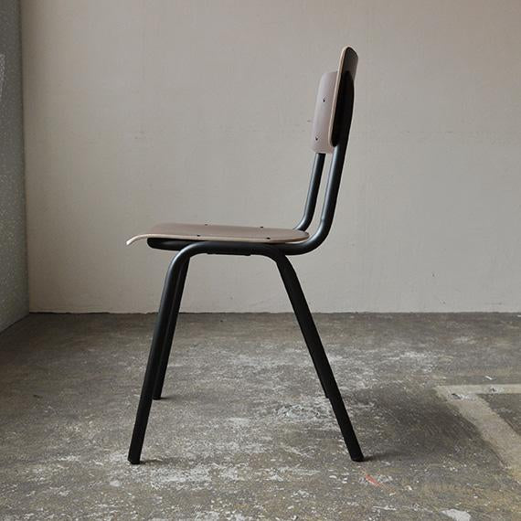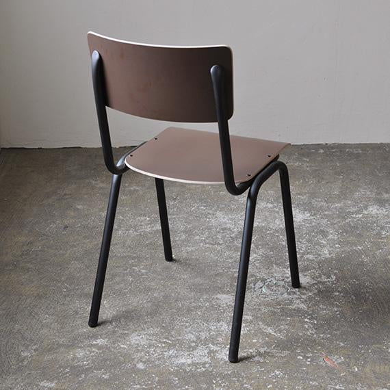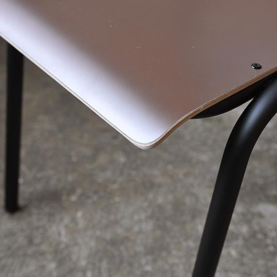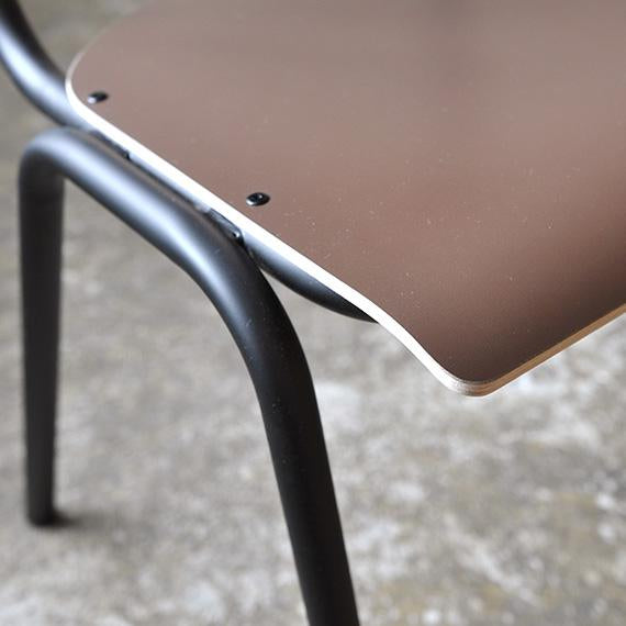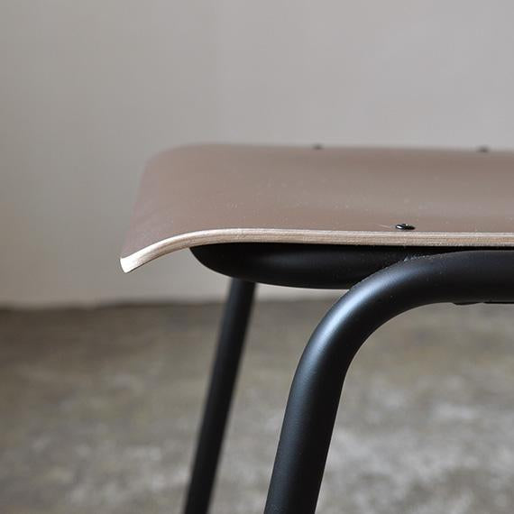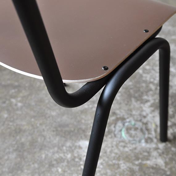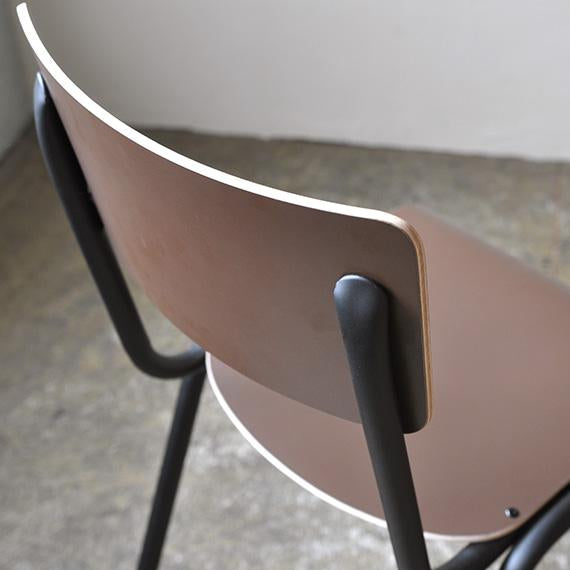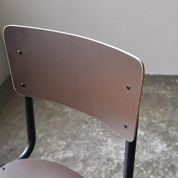 シンプルで飽きのこないデザインは、名前の由来でもあるスクールチェアを彷彿させます。座面と背もたれには装飾高圧積層シート(HPL)をレイヤーしたプライウッドを採用。
